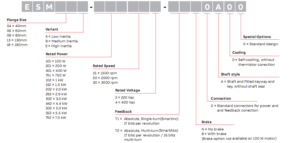 ESM系列伺服電機用于高動態(tài)精度的運動控制由于其轉(zhuǎn)矩密度高,ESM系列伺服電機具有高動態(tài)響應(yīng)。單圈和多圈高分辨率值編碼器反饋可選件可匹配應(yīng)用要求。ESM系列電機外殼符合IP65防護等級。額定功率從0.1kW至7.5kW,五個標準的框架法蘭尺寸為40,60,80,130和180毫米,可添加制動可選件??蚣?0-80法蘭的電機提供引出線,方便電機動力和反饋的連接。